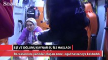 Eşi ve oğlunu kaynar su ile haşladı