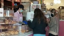 Stok Masker di Apotek Agam Habis. Pedagang melayani calon pembeli masker.