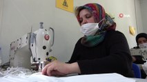 Dikiş makinesinin başında cerrahi maske üreten Dönay Karaman, "Kızım İspanya'da kaldı. Keşke diktiğimiz bu maske ve tulumlardan ona da ulaştırabilseydim" dedi.