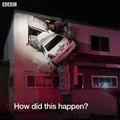 Strange Accident Happened with Car Crashes into the upper floor