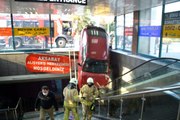 İstanbul'da kırmızı ışıkta duramayan bir araç, önündeki İETT otobüsüne çarparak Aksaray Yeraltı Çarşısı'na uçtu. Otomobil askıda kalırken, içerisindeki iki kişi yaralı olarak kurtuldu.