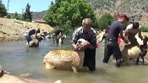 - Karabük’ün Eflani ilçesinde, derede koyun yıkama geleneği asırlardır devam ediyor. İlçeye bağlı Çörekli köyünde çobanlar, koyunları parazitlere ve hastalıklara karşı yıkıyor. Atalarından kalma yöntemleri kullanan çobanlar, yaz aylarında yaylalarda olan hayvanları dereden geçiriyor. Çobanlar, bu yöntemle koyunlara asalak olan hastalıklardan korumaya çalışıyor. Atalarından kalma yöntemle derede koyunları yıkayan çobanlar, bu sayede koyunların dış parazitler kene, bit ve pire gibi hastalıklardan da korunmasını sağlıyor. (ET-