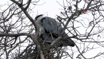 Otoparkın içine yuva yapan kuş ilgi odağı oldu