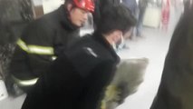 Durumun bildirilmesi üzerine olay yerine gelen itfaiye ekipleri, yaklaşık yarım saatlik çalışmanın ardından Metehan B'yi sıkıştığı yerden çıkardı.