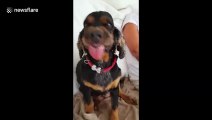 The pooch, Mrs Puckett, is a four-year-old half beagle, half mini-American shepherd.