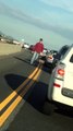 Ce fou roule en 4x4 sur une voiture sur l'autoroute !