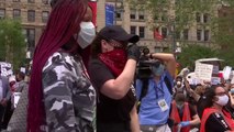 Thousands of tightly packed New Yorkers gather together to protest police brutality, crossing from Brooklyn into Manhattan via the Brooklyn Bridge on Thursday (June 4).