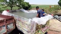Il a transformé la roulotte en piscine pour ses enfants, accablés par la chaleur à Diyarbakır.