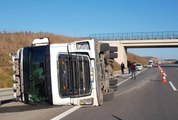 Balıkesir haberleri! Kuzey Marmara Otoyolu'nda devrilen tırın sürücüsü yaralandı