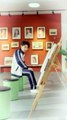 This woman was pretending to clean an open glass door by moving a cloth in the air. Another woman walking towards the door got fooled into thinking the door was shut and fell to the floor in attempting to open it.