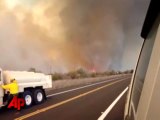Raw video - strong winds create fire tornado