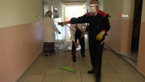 Çalışma kapsamında, Nevşehir Belediyesi Temizlik İşleri Müdürlüğü’ne bağlı ekipler sınavın yapılacağı 20 okulda dezenfekte çalışması yaptı. Çalışmalarında Sağlık Bakanlığı onaylı insan sağlığını tehdit etmeyen biyosidal ürünler kullanan belediye ekipleri, okulların giriş kapısı, çocukların elleriyle dokunabilecekleri kapı kolları ve çerçeveleri, merdivenler, korkuluklar, sınav olacakları sınıflar, oturacakları sıralar, öğretmen masaları, pencere kolları ve lavaboları titizlikle dezenfekte etti.