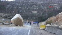 Bitlis'te dev kaya blokları karayoluna düştü
