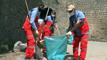 Diyarbakır'ın Lice ilçesinde, gönüllü bir grup kadın, Birkleyn Mağaraları ve Birkleyn Çayı etrafında temizlik yapan belediye çalışanlarına destek verdi.