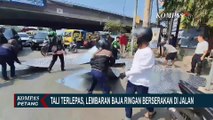 Puluhan Lembar Baja Ringan Jatuh dari Atap Minibus dan Nyaris Timpa Pengendara Lain