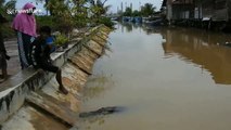 Friendly wild crocodile floats over to locals to be stroked in Indonesia