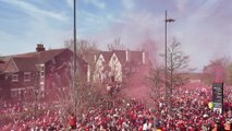 Liverpool fan celebrations outside Anfield ahead of team arrival