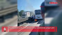 - Küçükçekmece Cennet Metrobüs Durağı yakınında bir metrobüs motor bölümünden bir anda tutuşarak alev aldı. Yangın sürücü ve yolcuların müdahalesiyle söndürülürken, metrobüs seferlerinde aksaklıklar yaşandı.Yangın, saat 22.15 sıralarında Küçükçekmece Cennet Metrobüs Durağı yakınında metrobüsün motor bölümünde çıktı. Edinilen bilgiye göre, Cennet Mahallesi Metrobüs durağına yanaşan metrobüsün motor kısmından dumanlar yükselmeye başladı.
