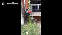 Firefighters captured a giant pet lizard that broke into a stone processing factory in southern China.
