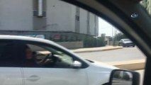 ( İSTANBUL ) -Kucağına aldığı çocuğu ile D-100 karayolunda araç kullandı- D-100 karayolunda pes dedirten görüntü İSTANBUL