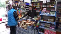 Abdurrahman Ateş iş yerinin önüne çektiği şeridin içinde oturuyor