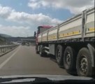 TIR şoförü otomobillerin önüne kırarak dehşeti yaşattı
