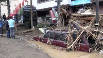 ( GİRESUN ) -- İlçe merkezindeki iki caddede bulunan tüm dükkanlar adeta nehre dönüşen suların getirdiği su ve çamurla doldu- Sel mağduru esnaf Murat Yaman:- “Eğer sel gündüz olsaydı, hepimiz suların içerisinde boğulup gidecektik” GİRESUN