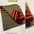The blue and red colour combination of this Ikat silk saree is rejuvenating. Big elephants with flowers in checks are present on the body of the saree. The kaddi border consists of flowers in ikat design, whereas the pallu has luminous lines with ikat design. A contrast blouse with border completes this magnificent weave. A contemporary ikat design on this saree adds a touch of regal charm to the person draping it on.