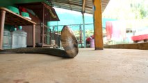 Snake rescuer Saidas Kusal was called to the site where a construction worker had spotted the snake's head peeping out.