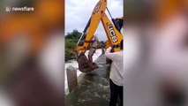 The animal puts up resistance in the first few attempts but is successfully rescued later.