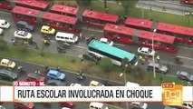 Accidente de tránsito en la autopista norte de Bogotá involucra a una ruta escolar