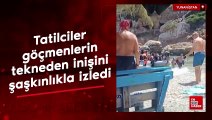Teknede bulunan 19 düzensiz göçmenden birisi denizde boğularak, diğeri de kaldırıldığı hastanede yaşamını yitirmişti. 17 düzensiz göçmenin sağı olarak kurtarıldığı olayda Akyarlar koyunda bazı vatandaşlar tarafından cep telefonu ile çekilen görüntülerde denize düşen düzensiz göçmenlerin çığlıkları koyu inletti. (BT-Y)