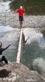 La bonne idée de traverser une rivière sur un tronc d'arbre