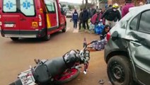 Forte batida entre carro e moto deixa duas pessoas feridas no Bairro Interlagos