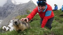 Des randonneurs se lient d'amitié avec des marmottes dans les Alpes Suisses