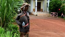 Armed with a stick, a floral-shirted scarecrow with a plastic pot for a head stands guard in front of a rural Cambodian home -- a sentry erected by superstitious farmers to ward off the coronavirus.