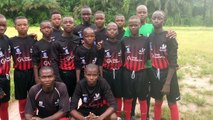 The U-14 team demonstrating appreciation to Daten FC from England which donated the football kits they are in the video.