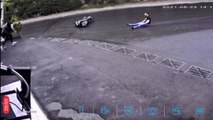 MOTOSİKLETTEN DÜŞEN SÜRÜCÜ OTURUR HALDE KAYARAK GELDİ, ELİNDEN TUTUP KALDIRDI