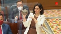 Ayuso, con un adoquín en la mano, pide a Podemos que condene los disturbios