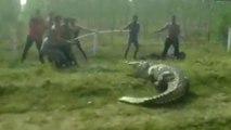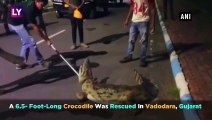 The officials of Forest Department rescued a crocodile in Gujarat’s Mahisagar on Sunday. Crocodile strayed into Khodiyar Mata Temple. The rescue operation was allegedly delayed due to the villagers who gathered at the temple to offer prayers to the crocodile.