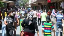 Bilecik'in Pazaryeri ilçesinde her hafta kurulan ilçe pazarına vatandaşlar koronavirüs (Covid-19) tedbirleri kapsamında 25'şer kişilik gruplar halinde alındı.