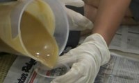 Adonan tersebut dibiarkan mengeras kurang lebih dua jam kemudian dituang ke wadah cetakan.