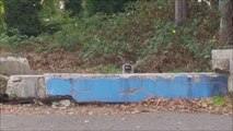 Un raton laveur se cache derrière ce bloc de béton... 1, ou 2, ou 3...???