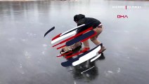 Donan gölde mahsur kalan geyiğin kurtarılma anı kamerada