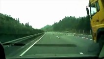 Ce chauffard veut doubler des camions par la droite...Pas de chance !
