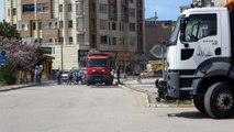 Sokakların yıkanması ve süpürülmesinden detay görüntüler