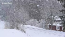 No sign of spring in Sweden as heavy snow continues to fall
