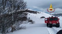 Filettino (FR) - Forti nevicate, evacuati madre e figlio in elicottero a Campo Staffi (04.01.21)