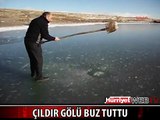 Ardahan-Kars illerine kıyısı bulunan Çıldır gölü tamamen dondu. Turistler buz üzerinde bisiklete binerek sıra dışı bir heyecan yaşadı.