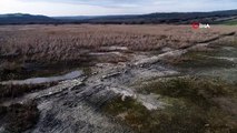 Terkos Gölü’nde sular çekildi: Ortaya çıkan tarihi yol böyle görüntülendi